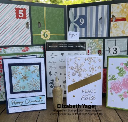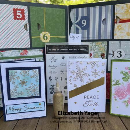Day 11 had a long narrow opening and inside was gold glitter glue!!! I think the last time I used glitter glue was doing craft with the grandchildren!! I slept on it (not literally!) overnight before coming up with some ideas next day!! I thought of all the Stampin Up! masking stencils I had in […]