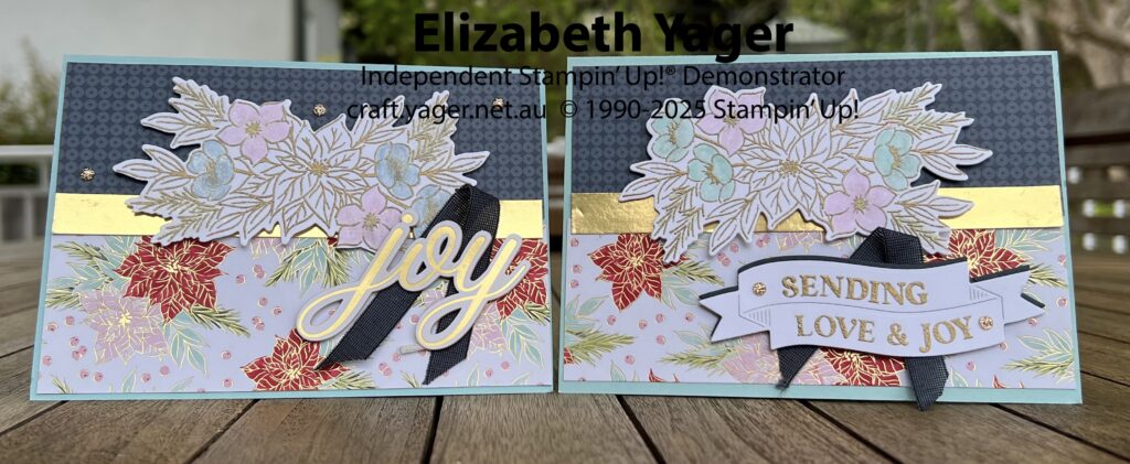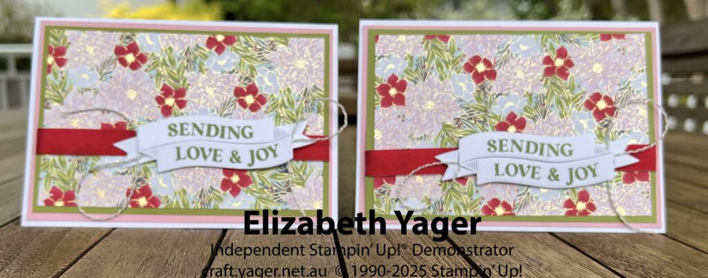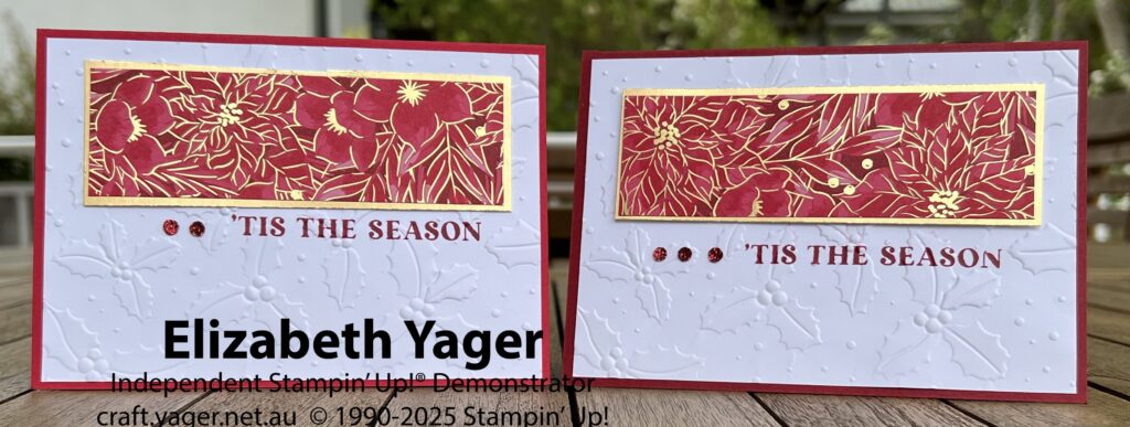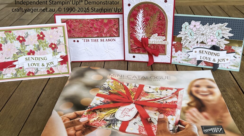 When I saw this suite in the Mini Catalogue, I loved the memories it evoked – the colours of Christmas and poinsettias in the home to add colour to a winter landscape. I adore the DSP and wanted to highlight it in some cards.