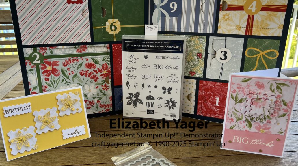 Day 7 were more dies – similar to the Postage dies There are three different sized square ones and two different sized rectangular ones. My first thought- ‘ I could have used these in some of my earlier projects!!’